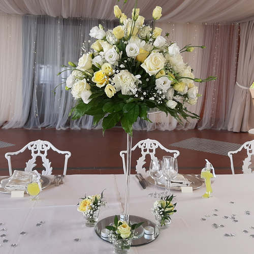 Your wedding table needs a flowery touch: many centertables are available for your choice! ... and don't forget the cake... it needs some flowers too!